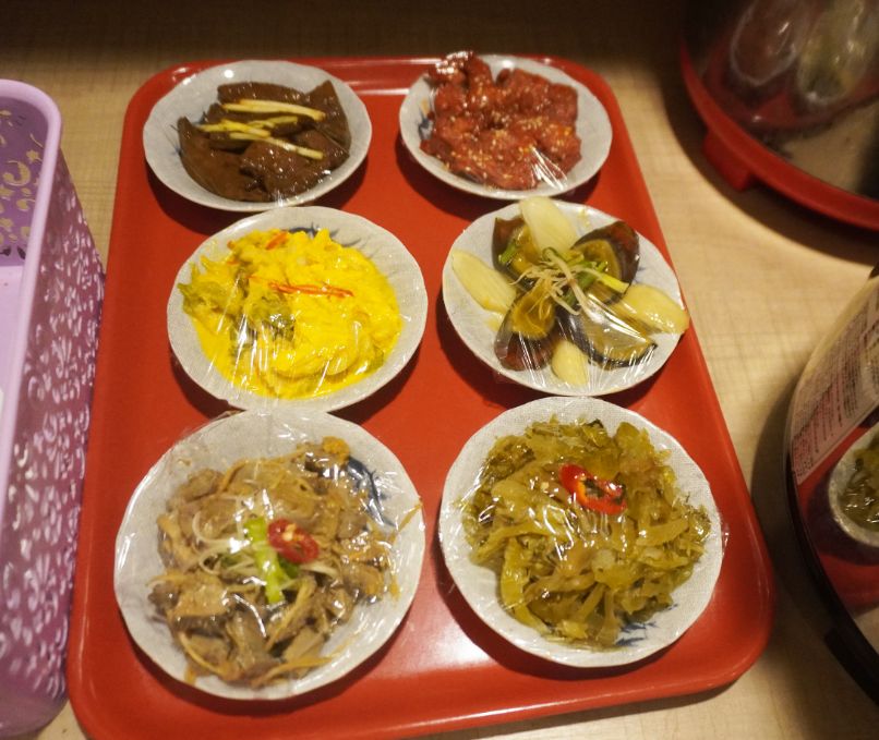中間櫃子上方擺放招牌小菜,另外還提供香蘭葉草可以免費飲用。