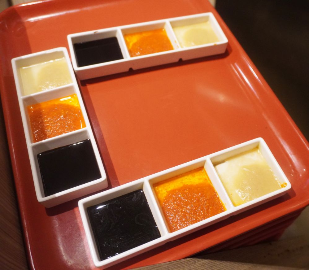 店家提供三款經典沾醬,分別是新加坡黑醬油、辣椒醬以及薑蓉醬。