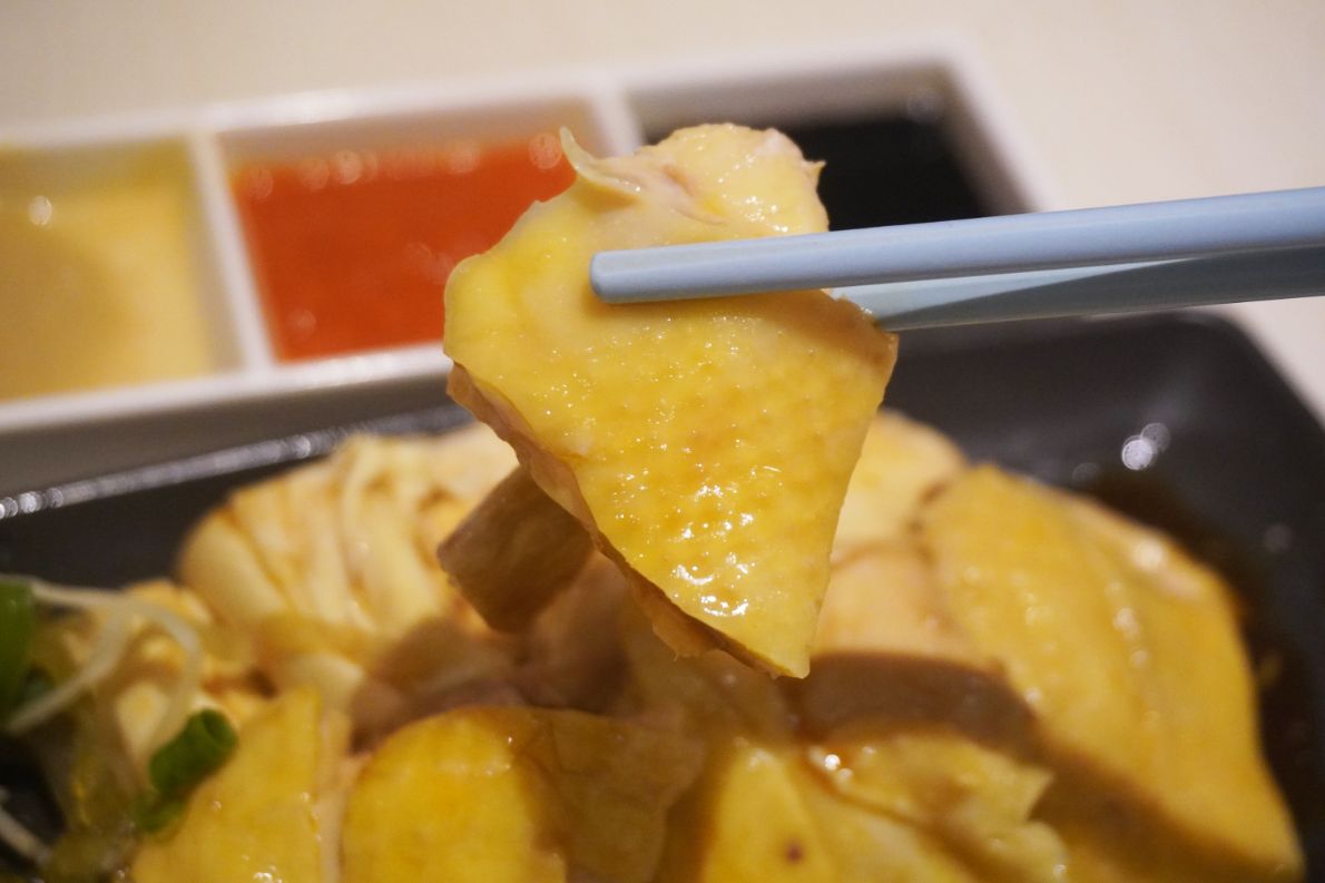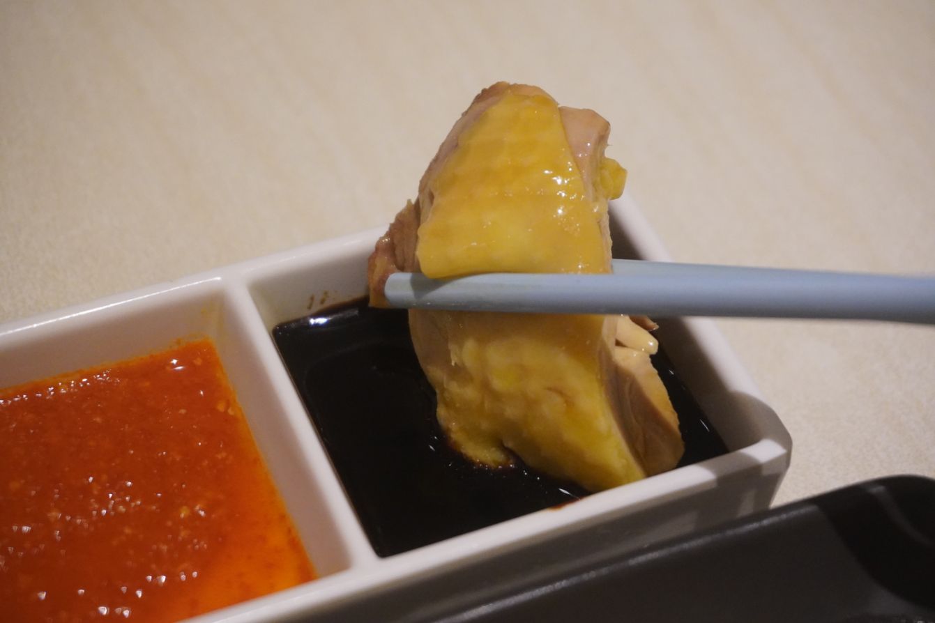 文慶雞的海南雞真的超好吃!特別點了一份來品嘗,雞皮口感Q彈,猶如果凍,因為在料理過程有進冰水冰鎮,雞肉帶有豐富的油脂,吃起來軟嫩而不柴。