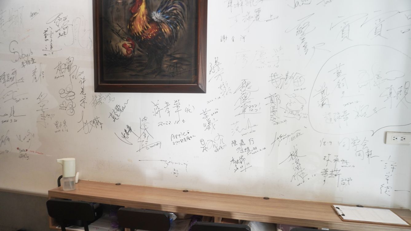 共有2層樓的空間,1樓還設有外帶的櫃檯,走進店面,右側可以看到一面簽名牆,有許多藝人名人的簽名,可見他的高人氣。